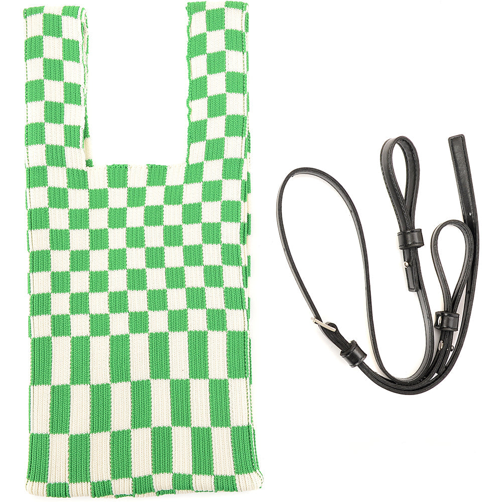 Lastframe Womens Ichimatsu Small Market Green/White Checker Tote in Green White