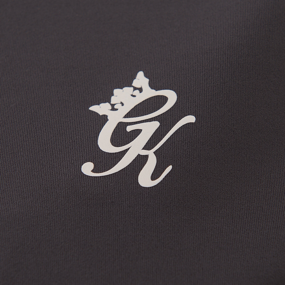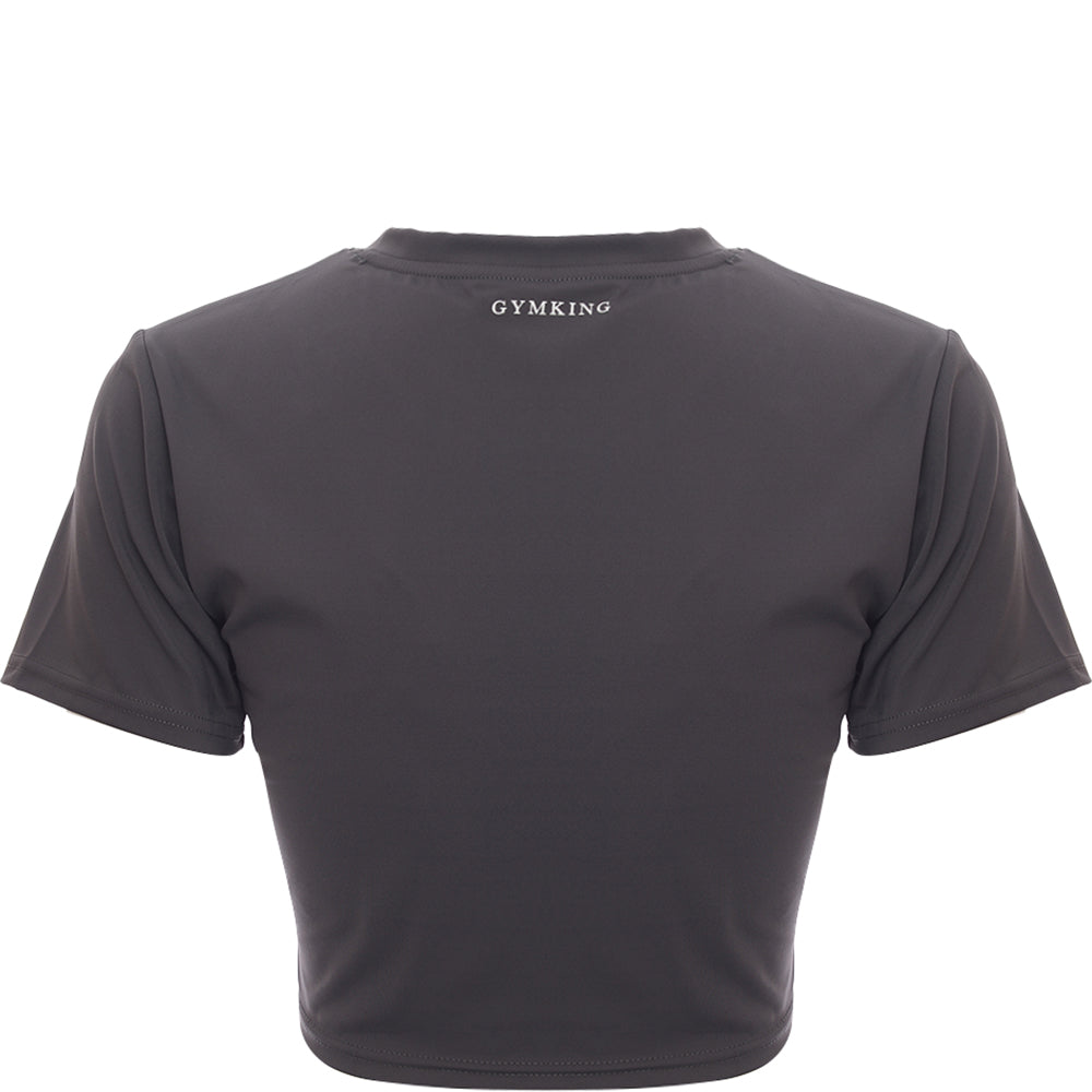 Main: 100% Polyester. The Gym King 365 cap sleeve t-shirt in graphite is a stylish and versatile addition to any wardrobe. Its cropped design adds a modern twist, perfect for pairing with high-waisted leggings or shorts. The small logo on the chest adds a touch of brand recognition without overwhelming the piece, and the smooth, soft fabric ensures comfort whether you're working out or just chilling out. It's a piece that combines fashion with function, making it a must-have for those who like their gym wear to be as trendy as it is practical.
