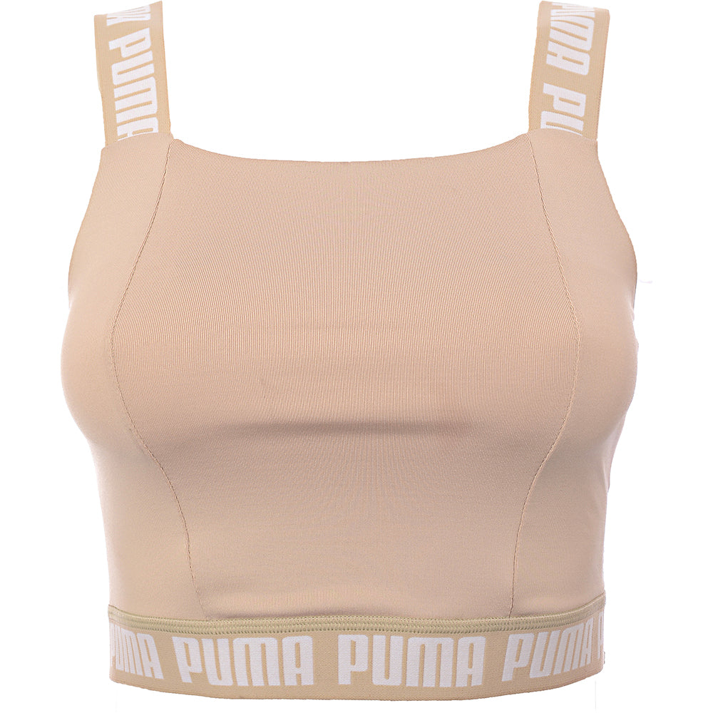 The Puma Training Strong crop top is a stylish and functional piece for your workout wardrobe. With its square neckline and stone-neutral color, it offers a chic look that doesn't sacrifice comfort or performance. The branding on the straps and band adds a bold touch, making it clear that you're wearing a piece designed for those who take their training seriously. Whether you're hitting the gym or just enjoying a casual day out, this crop top is sure to make a statement.