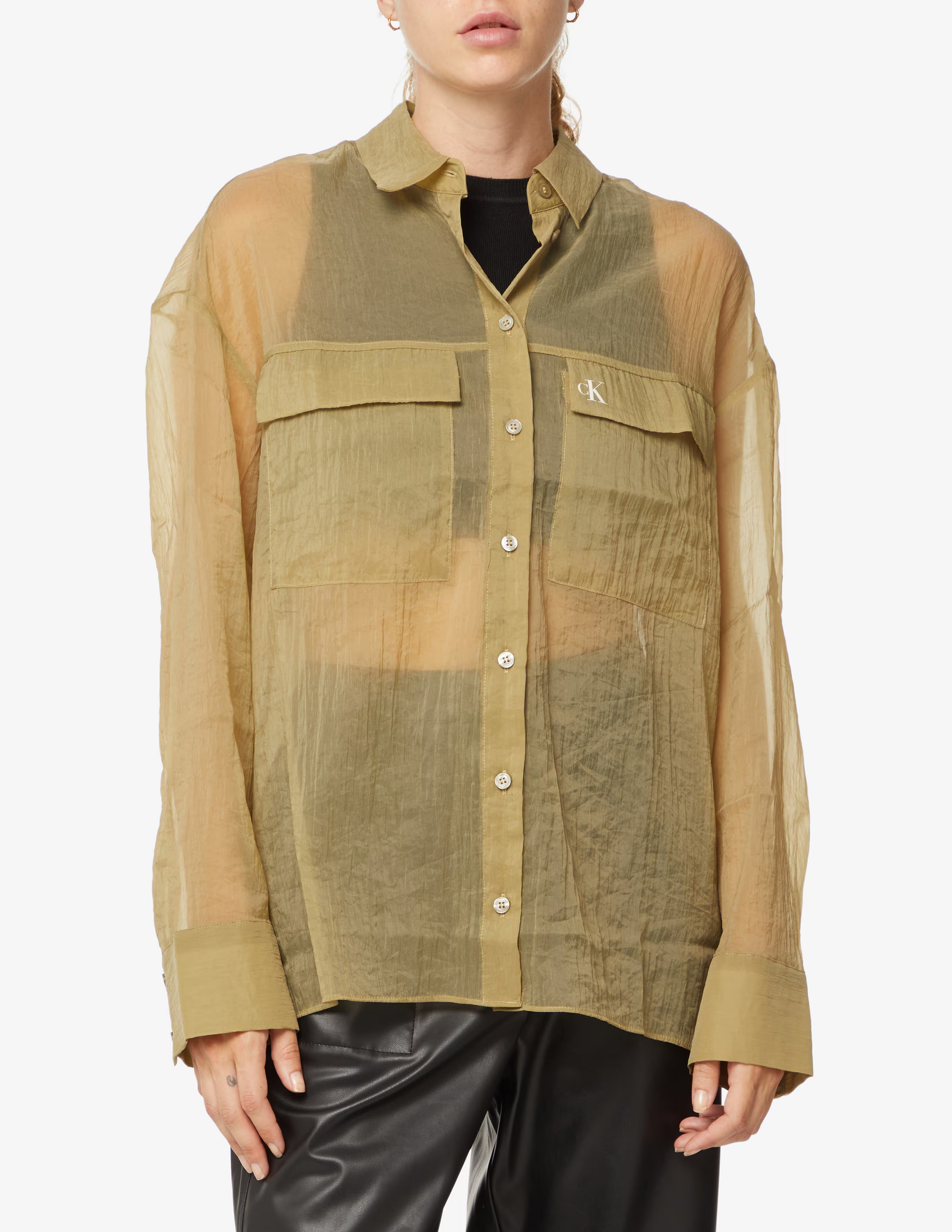 Calvin Klein Jeans Womens Sheer Chiffon Shirt in Brown