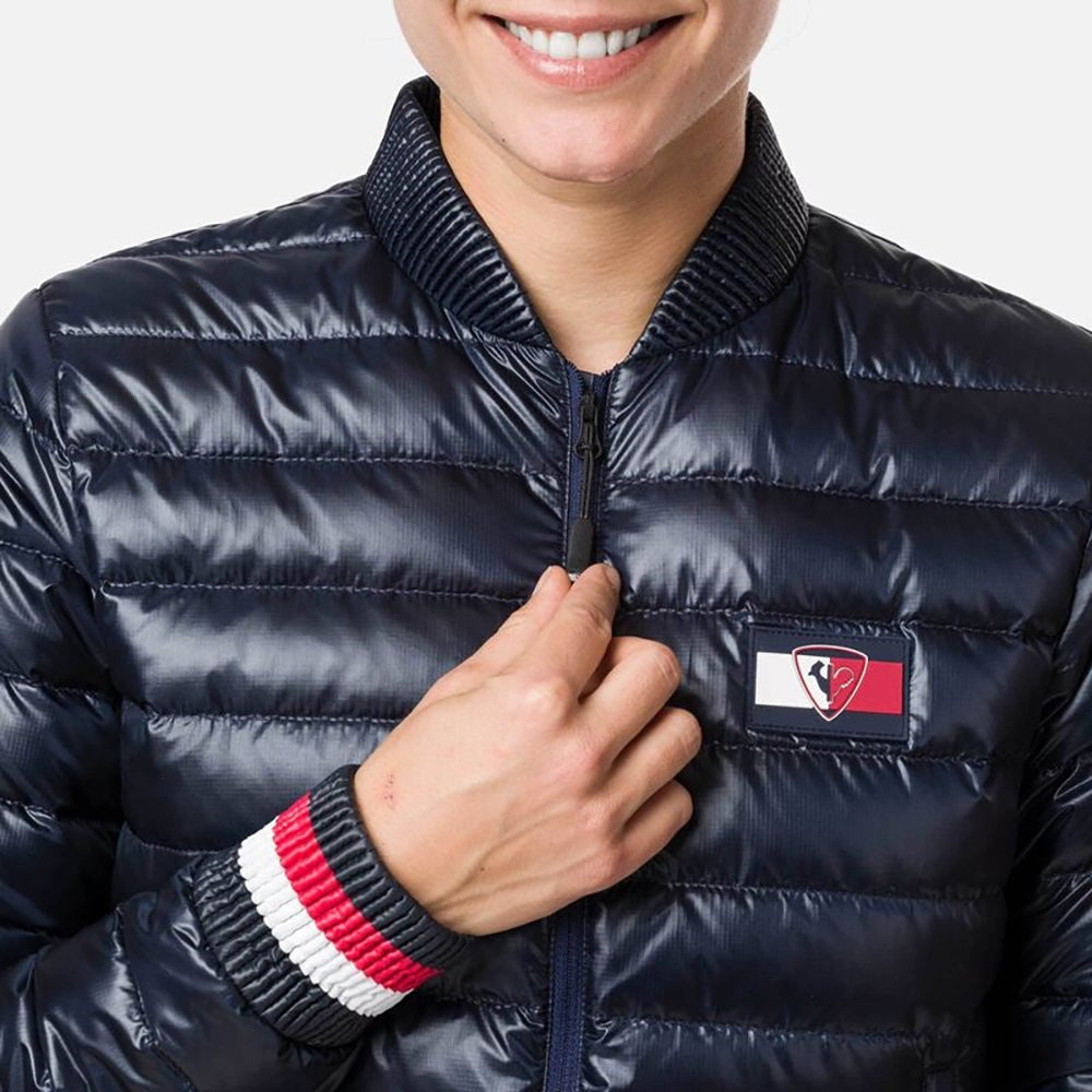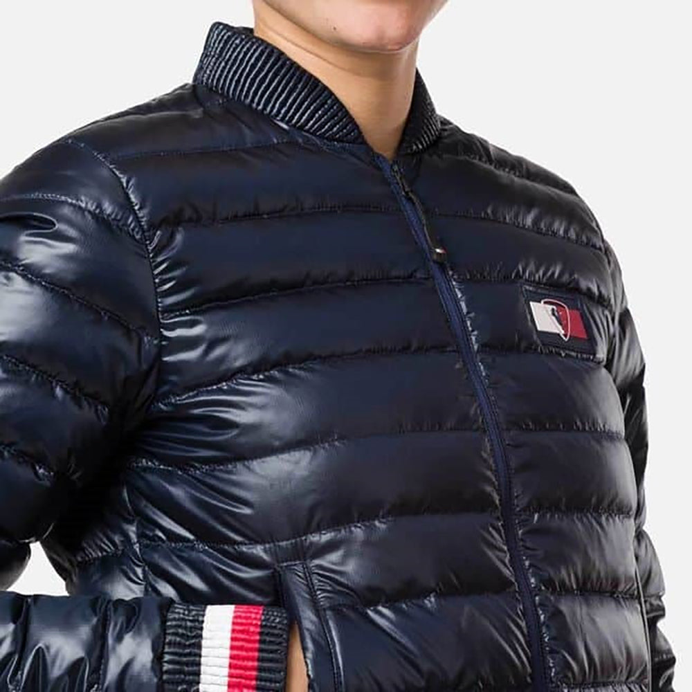Main Fabric: 100% Polyamide. The quilted jacket adds extra warmth under your ski jacket and can be worn on its own anytime you need a warm layer. The iconic Rossignol rooster is superimposed over the Tommy Hilfiger logo celebrating the brand collaboration. Tricolor rib-knit cuffs and at the waist evoke the Rossignol's sporty, French roots
